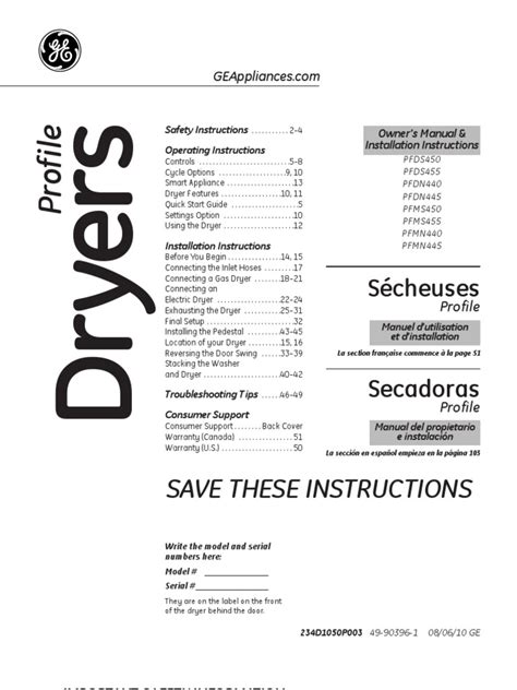 Read Online GE PROFILE DRYER MANUAL Kindle Editon